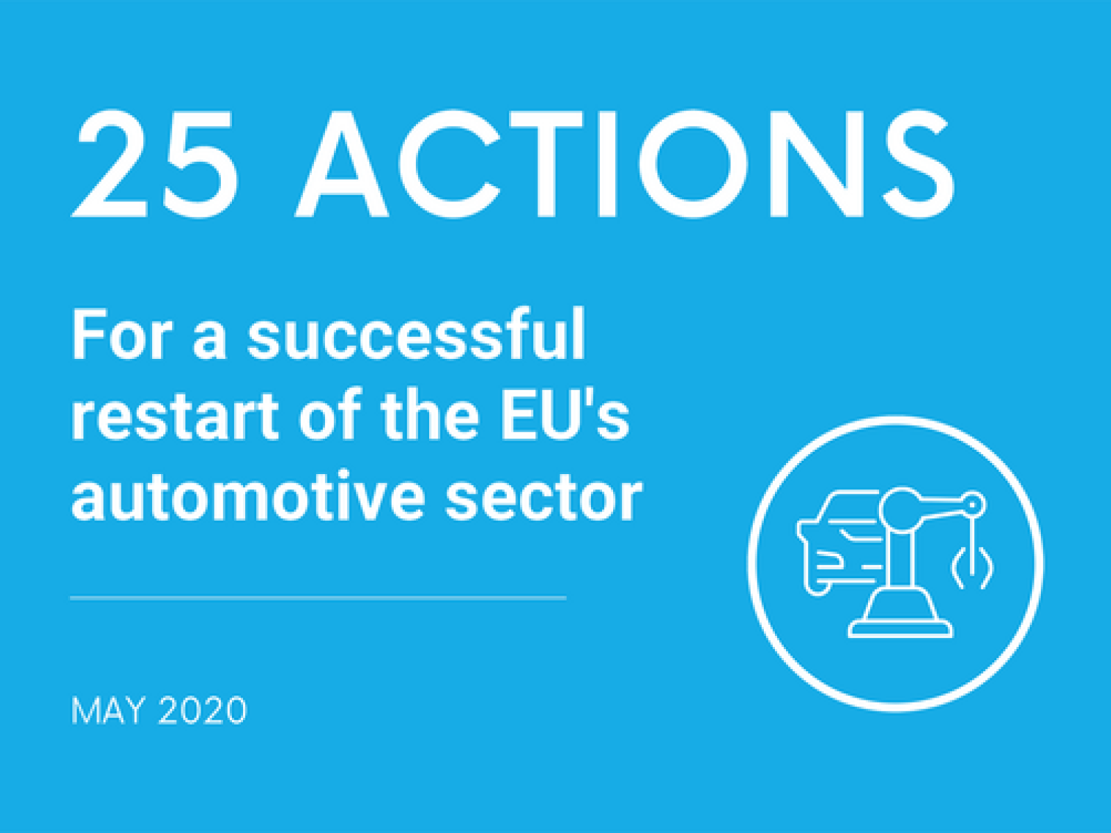 This paper, issued jointly by the four associations representing the EU automotive sector (ACEA, CECRA, CLEPA and ETRMA), lists 25 immediate and tangible policy recommendations. They are designed to help shape the political and regulatory response to the COVID-19 crisis, ensure the successful recovery of the economy at large and support a forward-looking restart of the automotive sector.